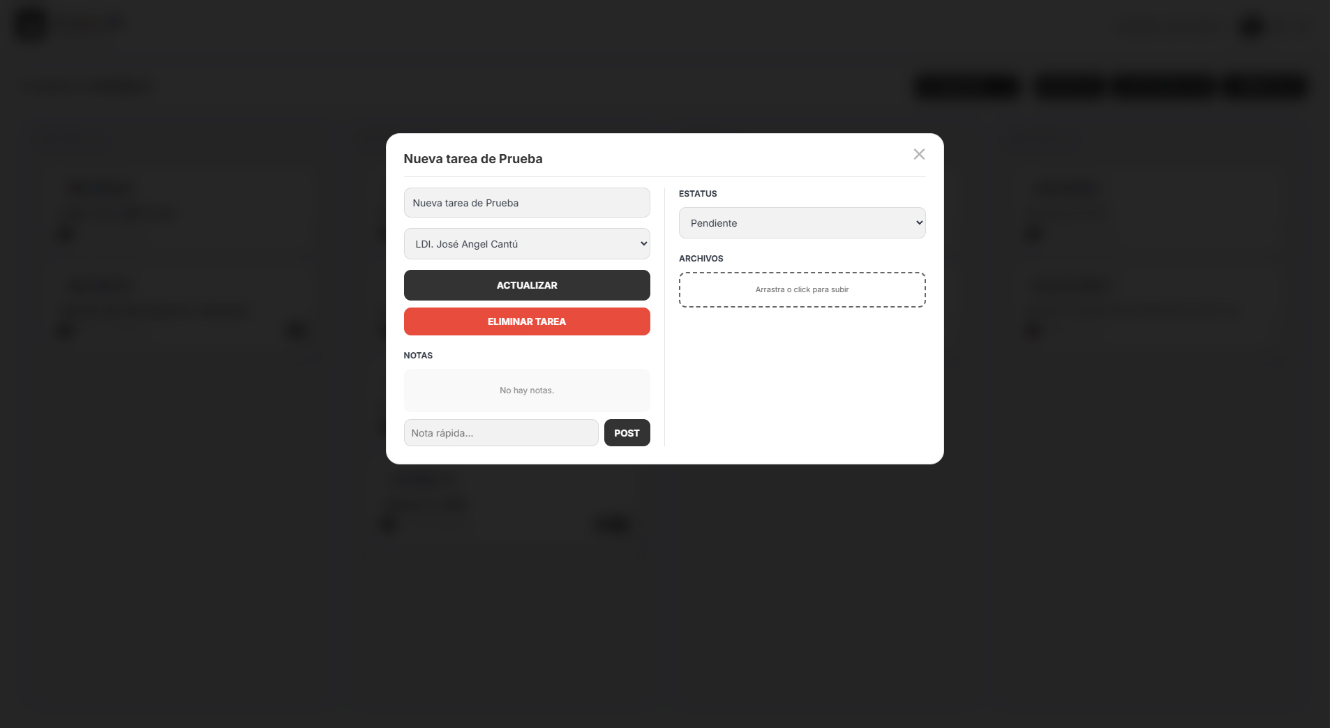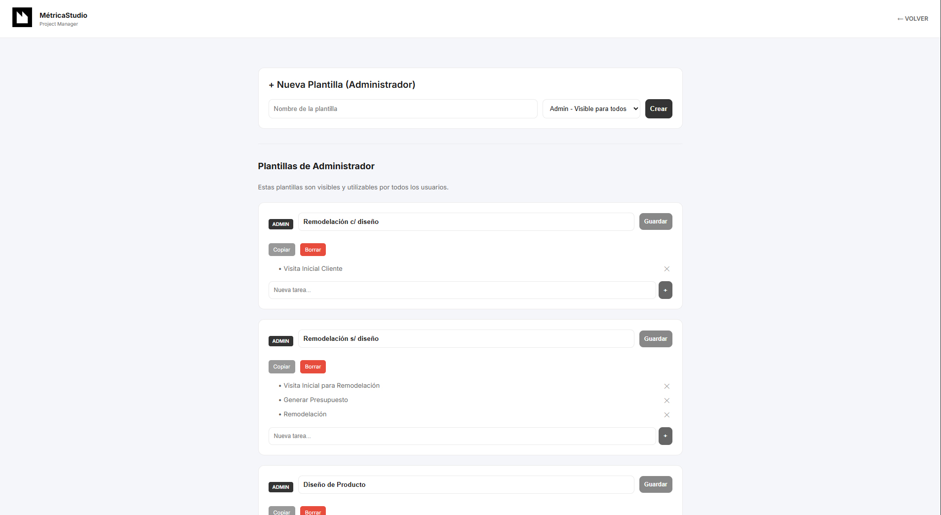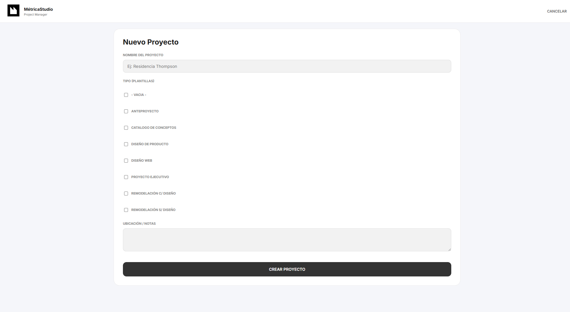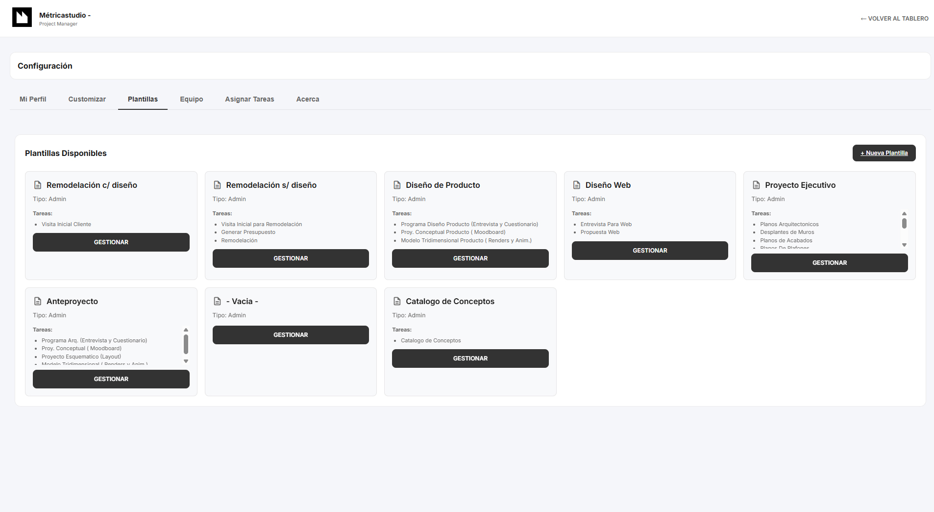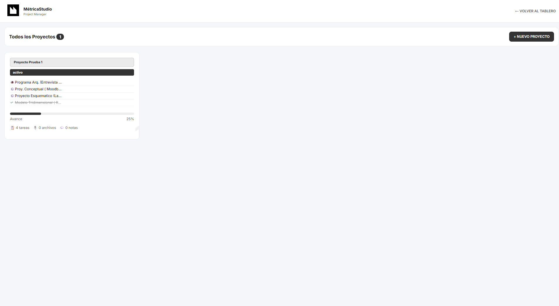 Se creo este programa para ser usado como Project Manager de Métricastudio, se busco utilizar elementos sencillos visualmente que fueran drag&drop para agilizar el trabajo, se agregaron niveles de usuarios, administrador de templates de tipos de proyecto/tareas, tareas personales ( sin proyecto) y detalles de customizacion pensandolo como un producto para su posible venta.